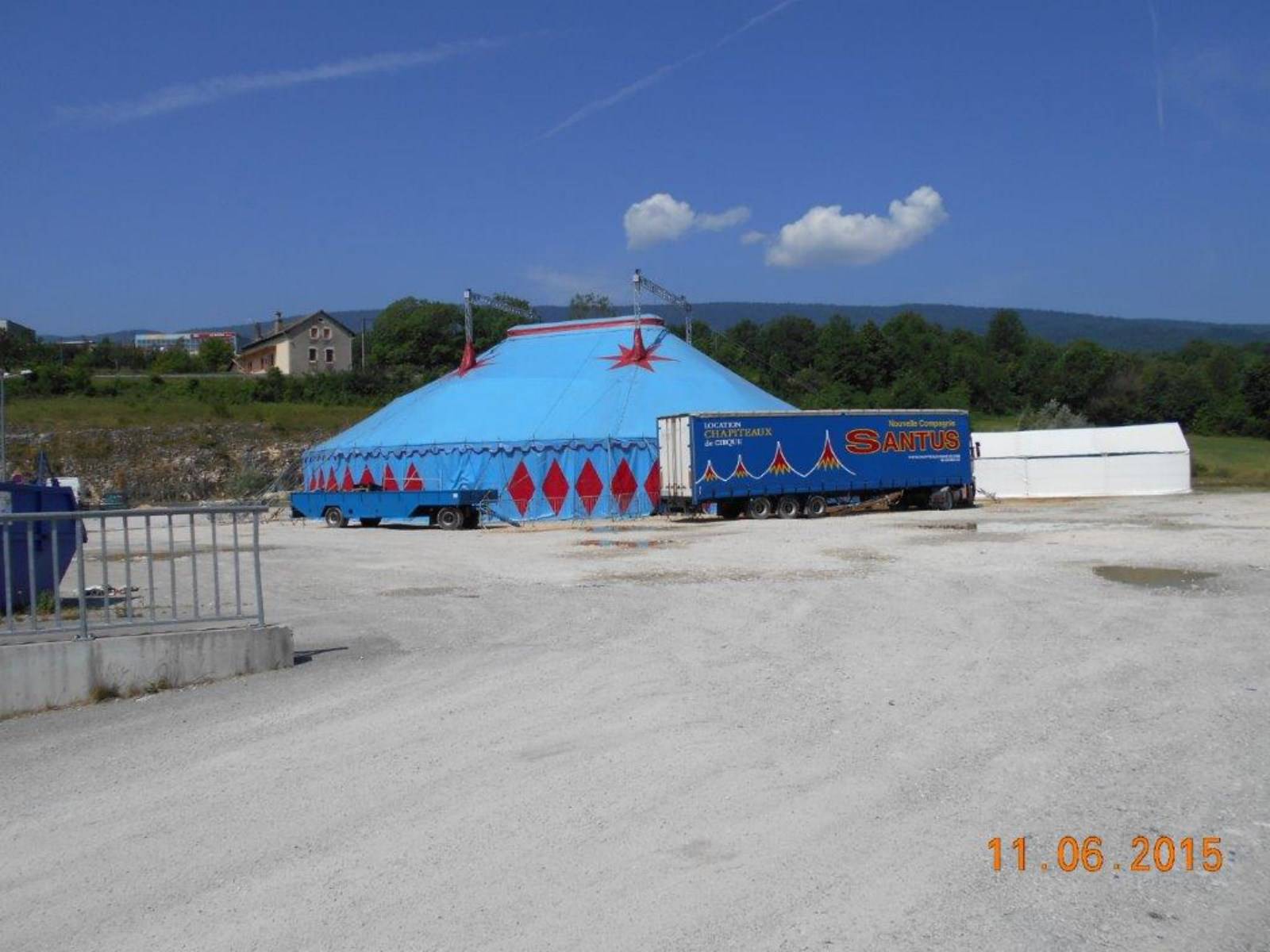 Location de notre chapiteau de cirque rond et opaque d'une taille de 32 mètres de diamètre avec corniches.